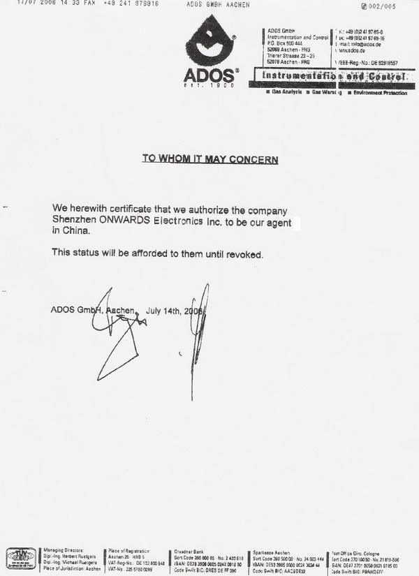 授權(quán)書-德國(guó)ADOS GmbH