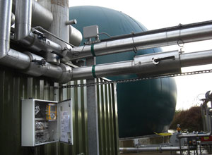 Biogas is collected from each of the five processing tanks which include the primary and secondary digesters, two buffer tanks and also the pasteurisation tank. It combines in the gas holder at about 15Mbar. The Geotech GA3000 samples the biogas in the tank continuously from where it goes to CHP or flare or boiler. Data from the GA3000, via four 4-20mA outputs, feeds into the plant’s SCADA system where it is on permanent display showing current readings and the updated average for the last 24 hours. James Wood is able to check gas production analysis as it happens. He has every reading recorded automatically since the plant started to run. From that data he observes trends and can see the result of operational changes, essential for continuously improving plant performance, efficiency and revenue.