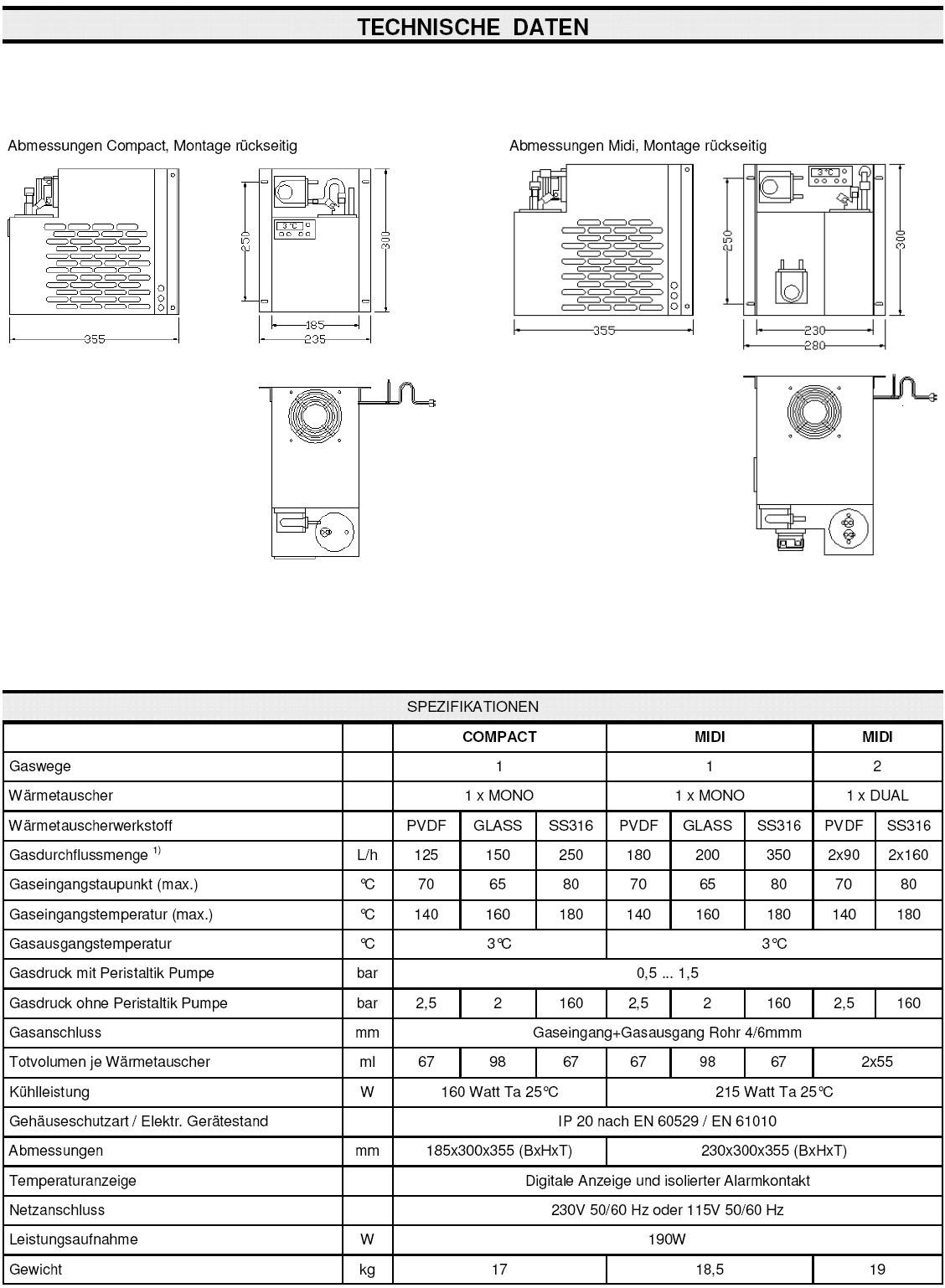 Um einen stabilen Taupunkt bei wechselnder Belastung zu erreichen, wurde eine präzise Proportionaltemperaturregelungund ein Hochleist ungswärmetauscher entwickelt. Der Kompressorkühler arbeitet mit umweltfreundlichem FCKW-freiem Kältemittel R134a. Der Gaswärmetauscher ist in einem Aluminiumzylinder eingebaut, welcher einen optimalen Wärmeaustausch zwischen Messgas und kühlmittelführenden Teilen gewährleistet. Im Gegensatz zu flüssigkeitsgefüllten Wärmetauschern kann keine Transferflüssigkeit austreten. Die eingebaute Kondensatpumpe entfernt kontinuierlich das anfallende Kondensat aus dem Gaswärmetauscher.