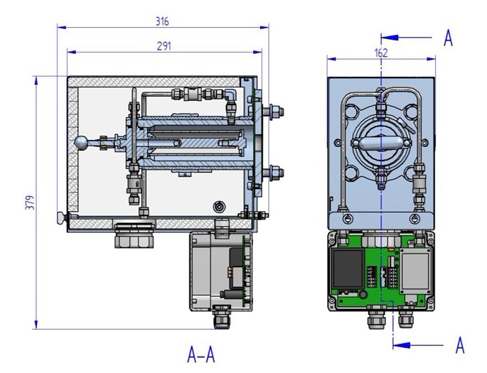 技術規(guī)格 技術規(guī)格 可選配:表面外膜0,2µm 能量功耗 約505 W 操作壓力 最大200 kPa abs 加熱元件 約500W 可選配:最大700 kPa abs 溫度傳感器 PT100 流量 600Nl/h 電源 230VAC / 50Hz 定位凸緣 DN 65, PN6; DIN 2573; SS316 可選配:115VAC / 60Hz 可選配:2“ ANSI-flange, 150lb. 接線盒 120 x 160 x 90 mm (WxHxD) 安裝角度 推薦 5°-15°,有利于冷凝物排水 電氣連接 鉗夾最大2.5 mm² 進氣口 G3/4“母螺紋 開關報警及電器 Typ. 230VAC/2A/min. 5VADC/5mA 出氣口 1/8“ NPT母螺紋 防護等級 電子IP65 測試氣口 6mm SS316隔壁直通 探針IP43 反沖氣口 6mm SS316隔壁直通 外殼 鋼板,黑色啞光處理 接液部件 1.4571, SiC, Viton® (FKM) 重量 約11 kg 溫度調(diào)節(jié)范圍 5 ... 200°C 尺寸 160 x 350 x 290 mm (WxHxD) 可選配:5 ... 315°C 工廠安裝環(huán)境 180°C
